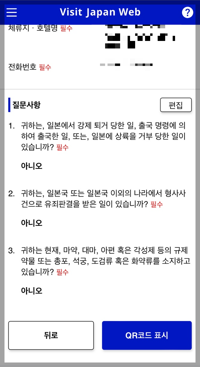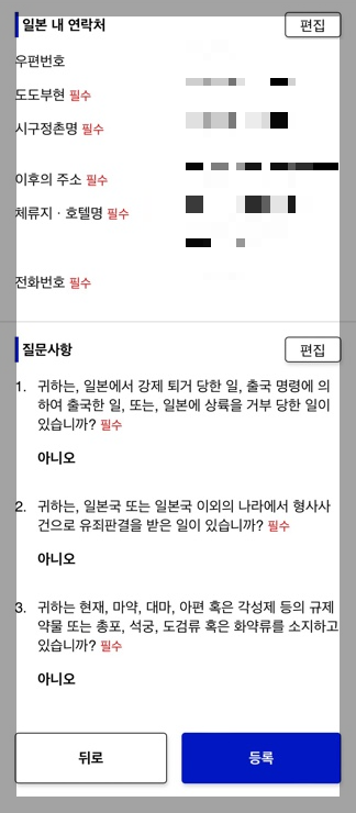 - 일본 입국 전까지 등록이 가능하기 때문에 한국에서 출발 전에 미리 작성하는 것이 좋습니다.
