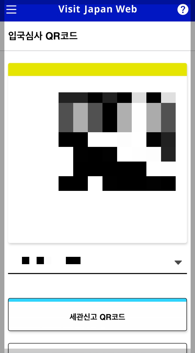 - 노란색의 입국심사 큐알코드 이미지가 나타납니다.