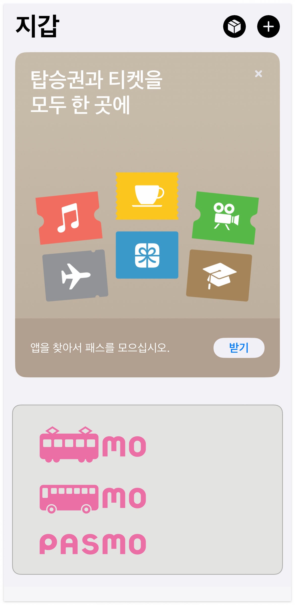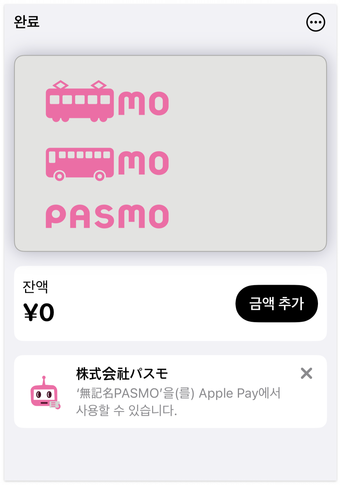 - 지갑 앱으로 이동을 해보면 파스모(PASMO) 교통카드가 추가된 것을 확인할 수 있습니다.