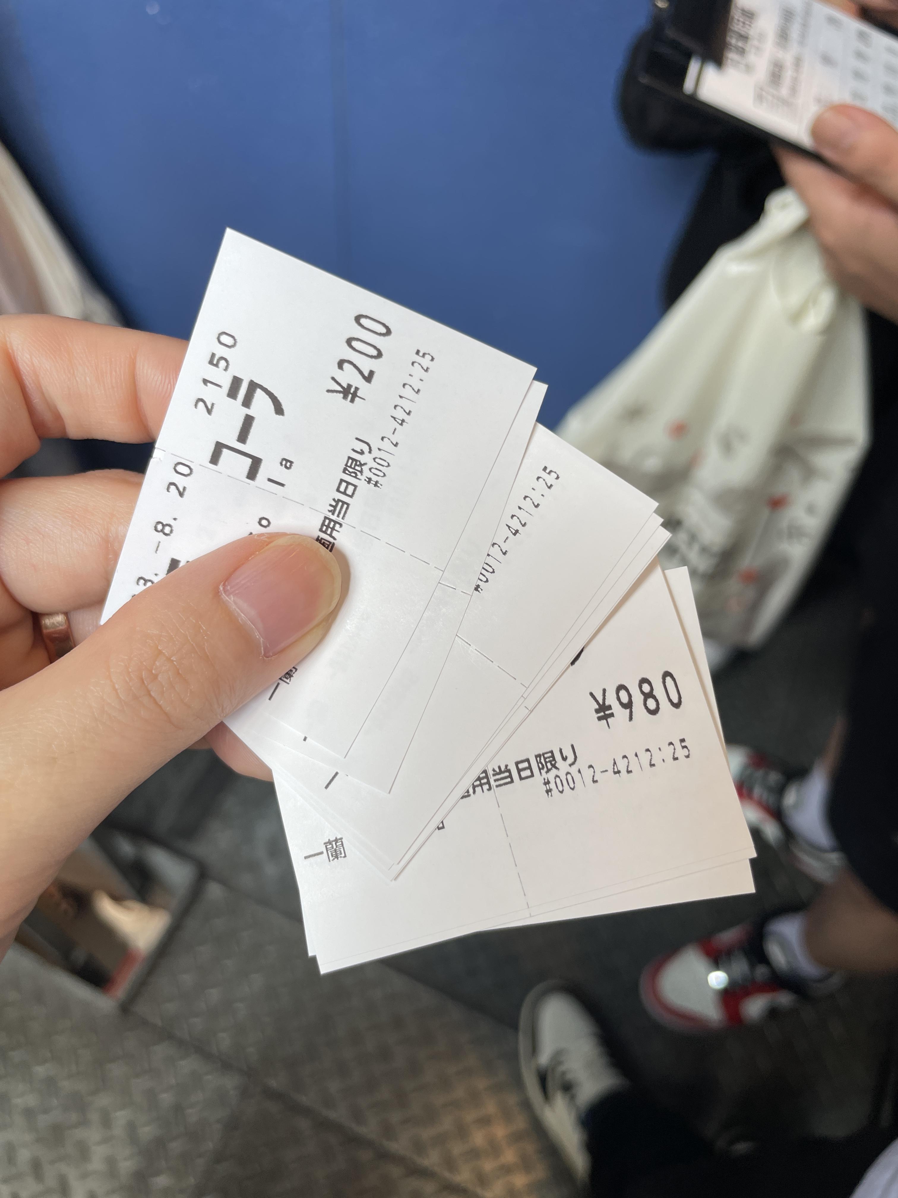 ※ 이치란라멘 단품 4개, 차슈 추가, 콜라 4개 이렇게 주문했더니 종류와 수량에 맞춰 식권이 한개씩 나옵니다. 뭔가 옛날 시절에 차표 끊듯이 조그마한 종이가 숑숑 하고 나오는데 조금 귀여웠습니다. - 식권이 나왔던 곳 아래쪽에 거스름돈이 나오니까 챙기는 것도 잊지마세요.