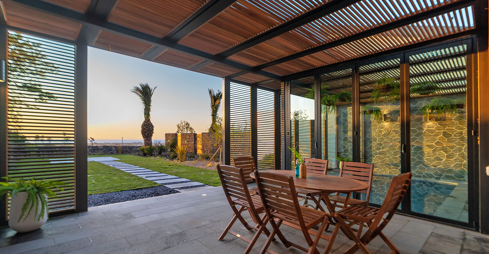 현관문 밖으로 나가면 야외 테라스도 멋지게 자리하고 있는데요, 자쿠지 풀까지 같이 있어서 수영을 즐기기에도 좋고, 날씨 좋은 날에 해변을 감상하며 차 한잔 하고픈 테라스였습니다. (저는 아쉽게도 겨울에 갔었고, 바람도 너무 세차게 불어서 이용을 못했지만...)
