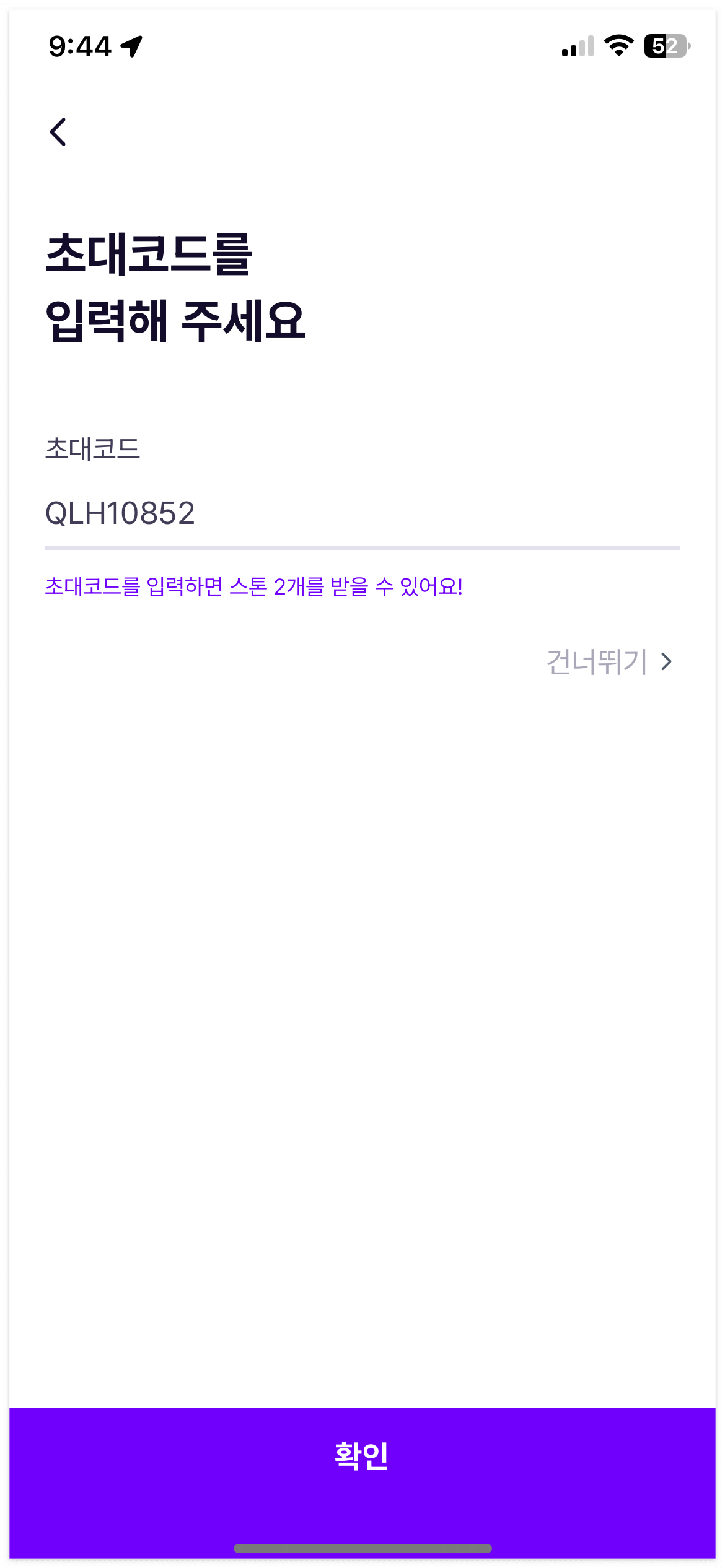 - 친구초대 코드를 입력하면 할인혜택에 활용할 수 있는 스톤 2개를 받을 수 있다.