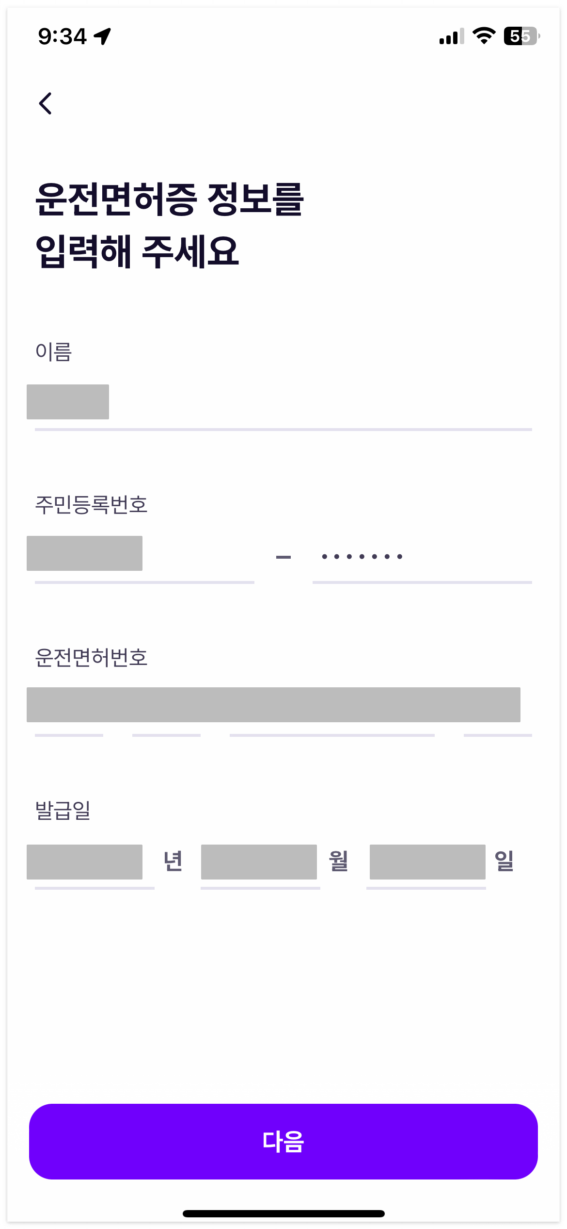 - 이름/주민등록번호/ 통신사/ 전화번호를 입력한다.